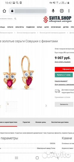 Деткие зототые серьги Совушки с фианитами