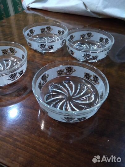 400 ₽Вазочки конфетницыВазочки конфетницыОчень качественные вазочки розетки из толстого стекла с рисунком золотом и черным,рифленое дно ,диаметр 11 см ,2 штуки.Цена одной.