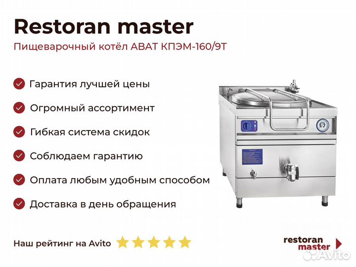 Пищеварочный котёл abat кпэм-160/9Т