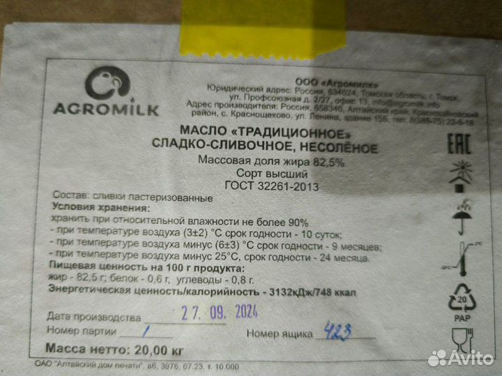 Масло сливочное 82.5