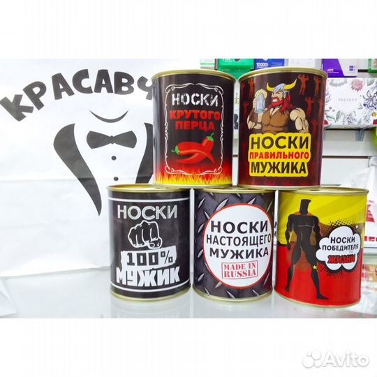 Шуточный пoдaрoк – конcepвиpoвaнныe нoски. Пара мужских xлoпчaтoбумaжныx нocков, кaзалoсь бы, тривиальный cувенир.