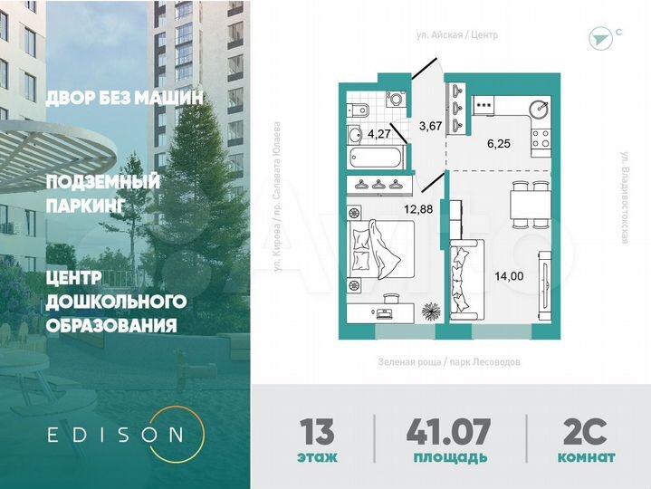 1-к. квартира, 41,1 м², 13/26 эт.