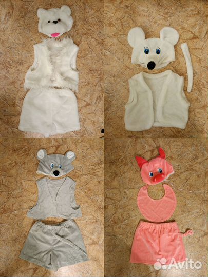400 ₽Костюм мышки, хрюшки и медведя 3-6 летКостюм мышки, хрюшки и медведя 3-6 летКостюмы серой и белой мышки, хрюшки и белого медведя.