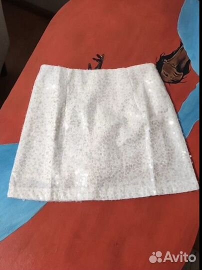 Юбка в пайетках мини белая новогодняя