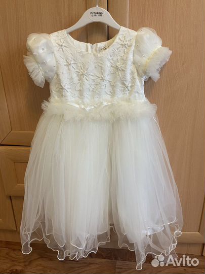 договорнаяНарядное платье для девочки 122 128Нарядное платье для девочки 122 128Платье можно сказать новое.Одевади один раз на выпускной в детском саду.Брали в свадебном салоне(не б/у с рук).Туфли и кольца(под юбку),украшение для волос отдам бонусом к платью за всё 4000р