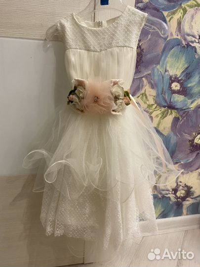 Белое нарядное платье с лепестками