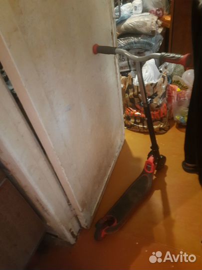Самокат SKIP Pull трюковой для взрослых, для детей, алюминиевая дека, хром-молибденовый руль, компрессия HIC, красно-черный цвет, рост 165-175.