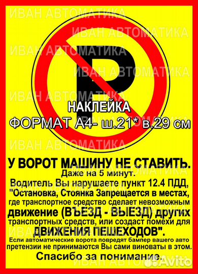 Наклейка "не парковать", " У ворот машину не стави