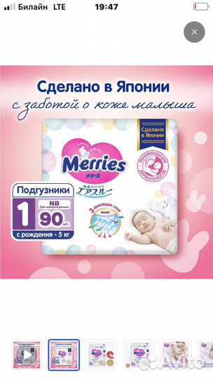 Подгузники детские Merries Япония