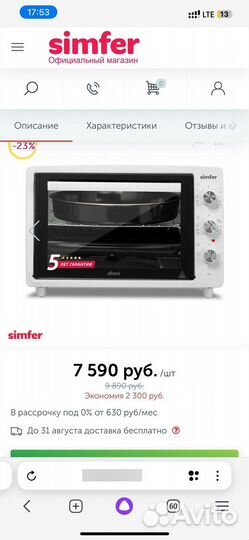 Мини-печь simfer m4557