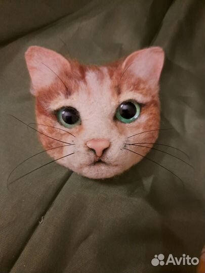 Котик из шерсти брошка