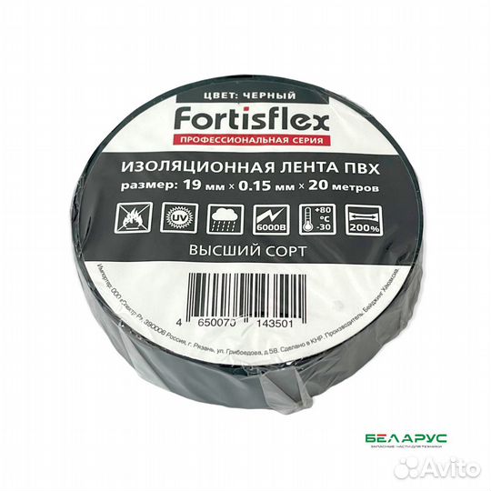 1992 Изолента пвх 19*20 Fortisflex черная