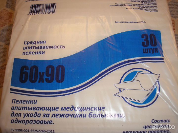 Пеленки одноразовые 60х90 30 штук для взрослых