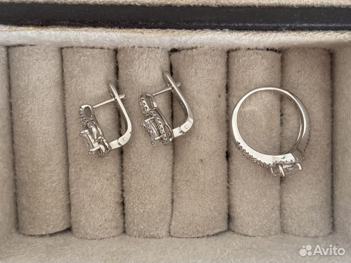 серебряные серьги и кольцо комплект