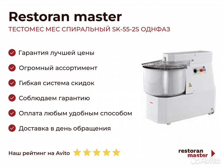 Тестомес MEC спиральный SK-55-2S однфаз