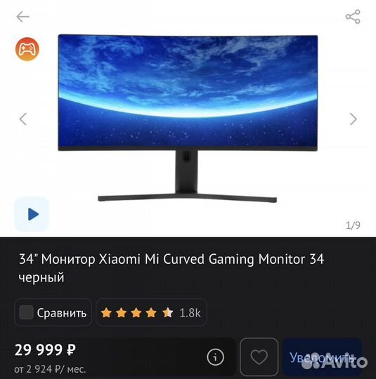 21 900 ₽Монитор Xiomi Mi Curved Display 34/4k/144HzМонитор Xiomi Mi Curved Display 34/4k/144HzВ отличном состоянии , полный комплект .