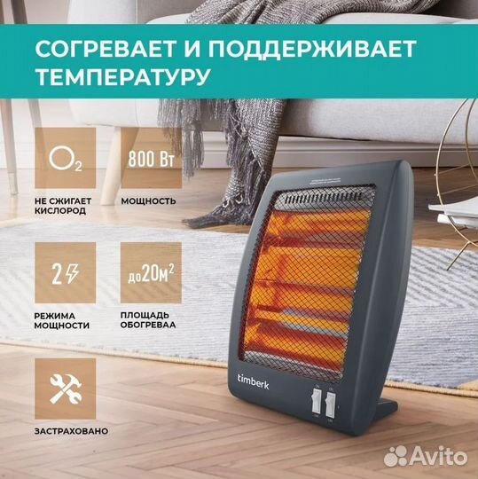 Новый кварцевый обогреватель timberk. 400/800Вт