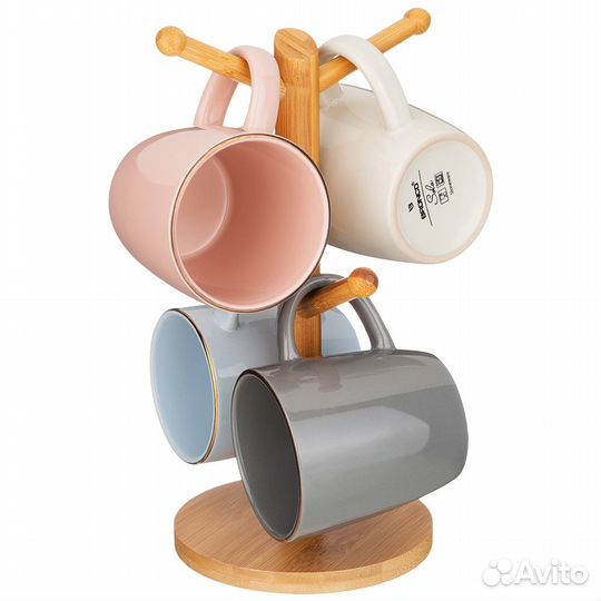 Набор Кружек Bronco "Solo" 4 Шт На Деревянной Подс