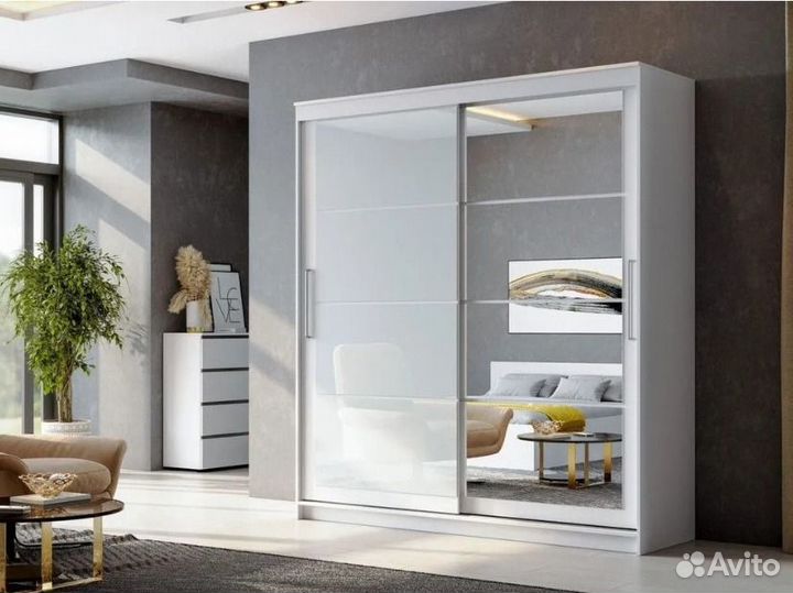 Шкаф купе 1600 мм; зеркало; белый