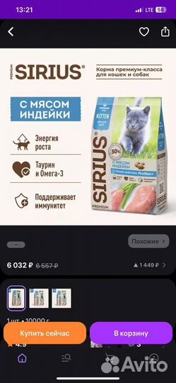 Корм Сириус для котят сухой 10кг