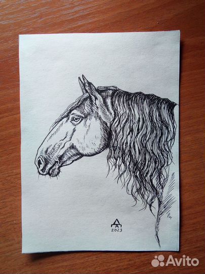 Портреты лошадей, графика, 13х18 см
