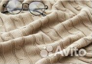 Плед вязаный с косами 180 200 бежевый