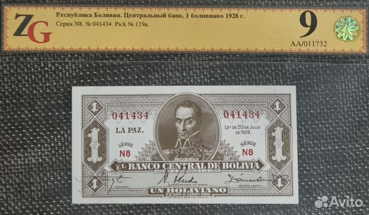 1 боливиано 1928.г Боливия в слабе ZG. MS 58