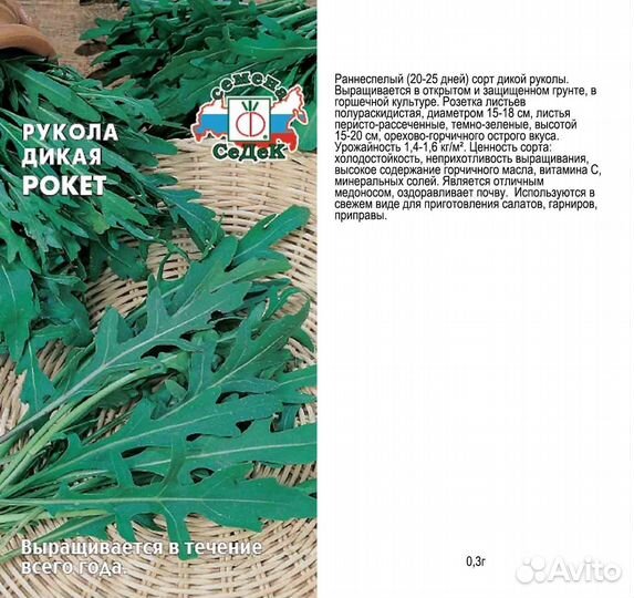 Салат рукола (Индау) Рокет дикая (Седек) Ц 0,3г/ран,сп,20-25д,d-15-18см,15-20см,пересто-рассеченные