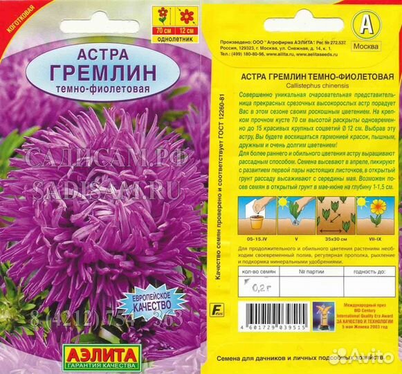 Астра Гремлин Темно-фиолетовая (Аэлита) Ц 0,2г/однолет,h-70см,d-12,шар,игольчатая