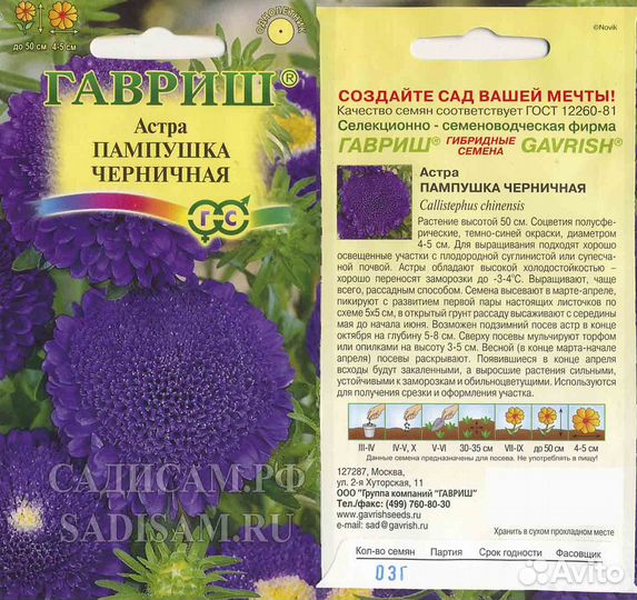 Астра Пампушка черничная (Гавриш) Ц 0,3г/темно-синий,h-50см,d-4-5см