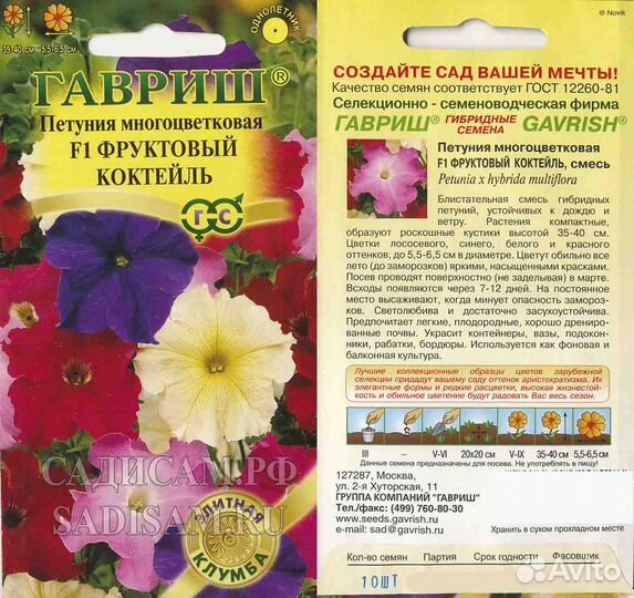 Петуния Фруктовый коктейль F1 многоцв.смесь (Гавриш) Ц 10шт/7шт/ (Элитная клумба) /35-40см d-5,5-6,5