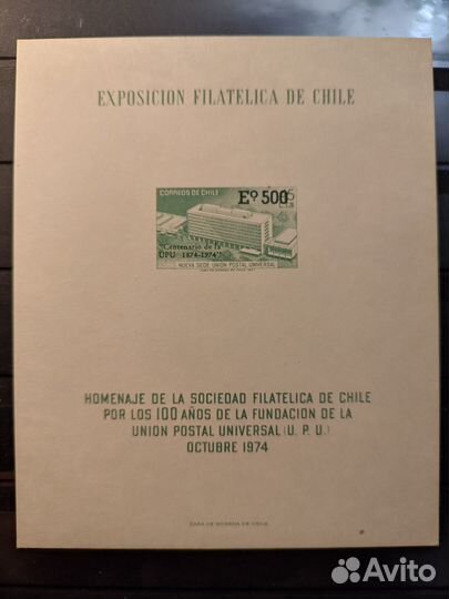 Почтовый блок Чили 1974 год MNH