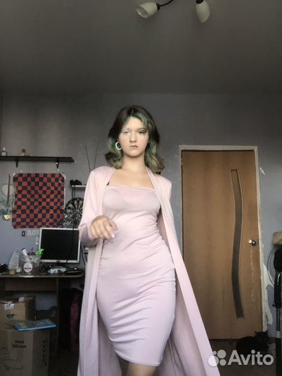 Розовое пудровое платье 42 44