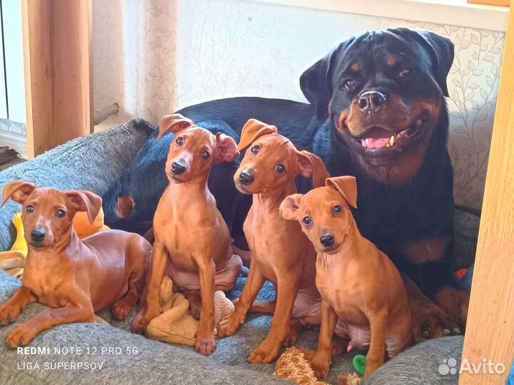 Рыжие щенки цвергпинчера