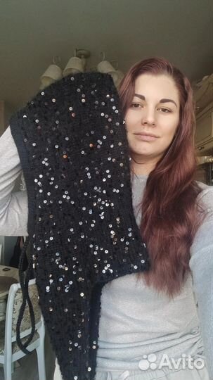 Капор с пайетками черный из пуха норки