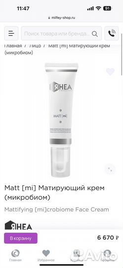 Rhea крем matt матирующий (микробиом)