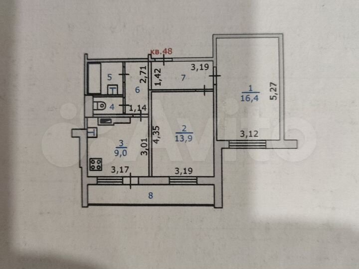 3-к. квартира, 63,1 м², 5/9 эт.