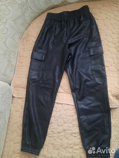 брюки кожаные женские бежевые прямые 40 размер