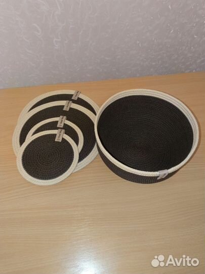 Салфетки и корзина из хлопкового шнура