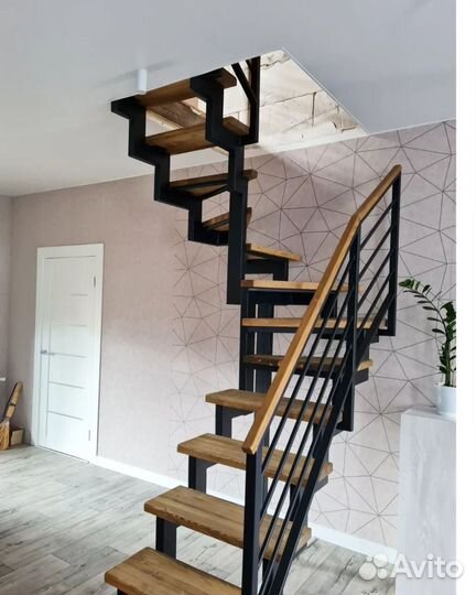 Лестница на второй этаж на металлокаркасе