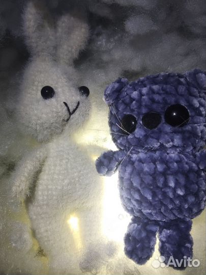 Вязаные котик и зайчик