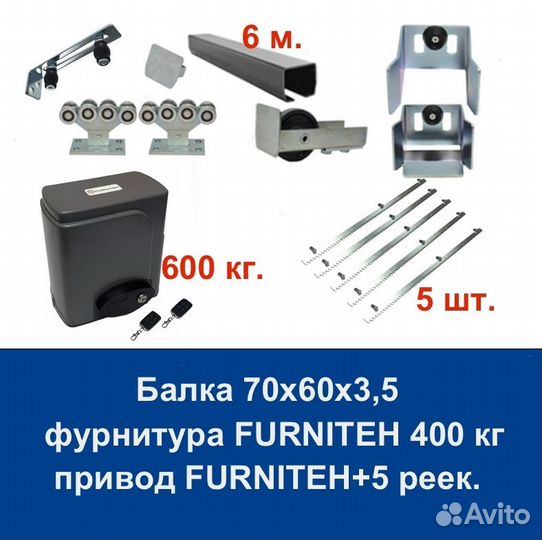 Комплект для откатных ворот furniteh 6+ автоматика