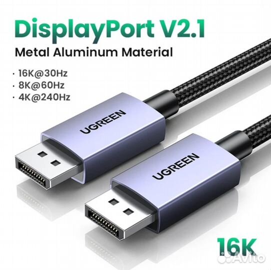 Кабель ugreen 16K Displayport DP2.1 8K 4K144Hz