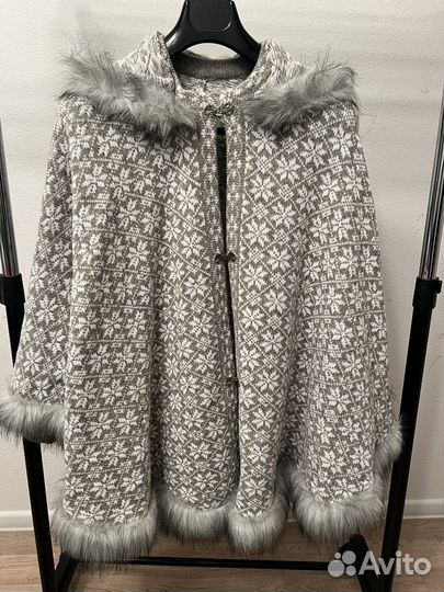 Пончо вязаное с мехом one size ручная работа