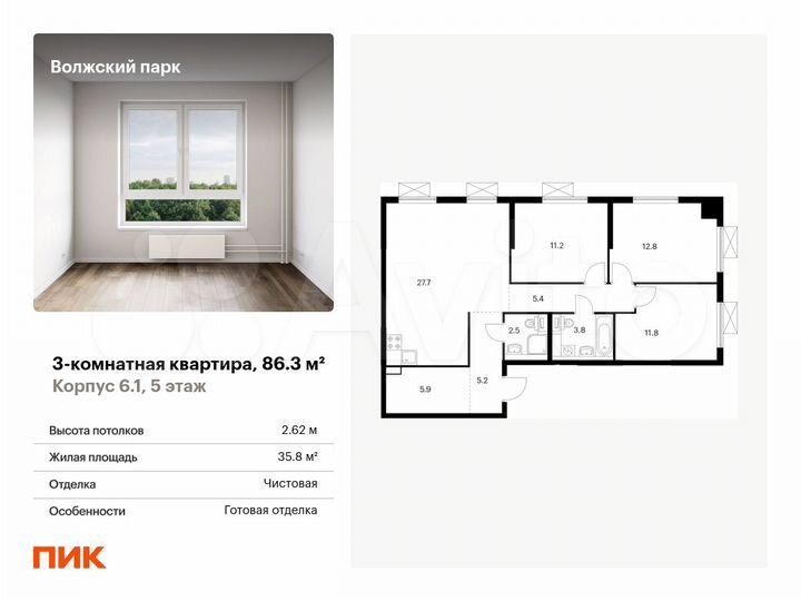 3-к. квартира, 86,3 м², 5/24 эт.