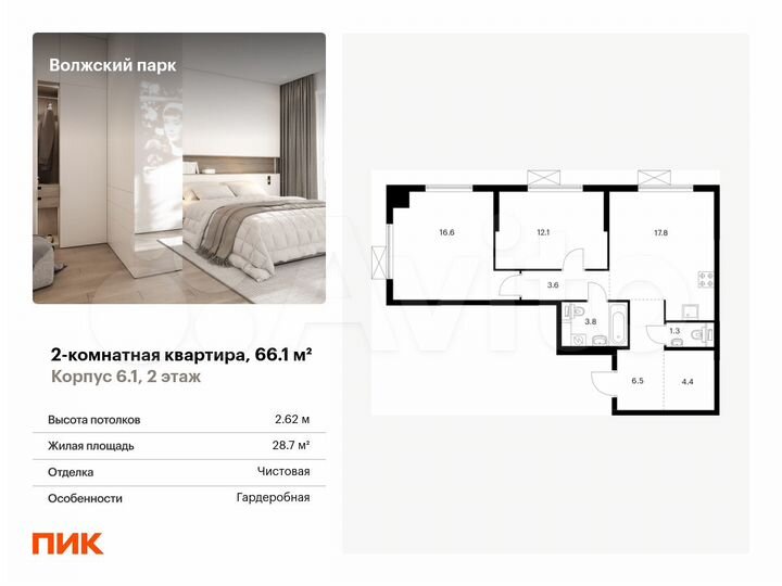2-к. квартира, 66,1 м², 2/24 эт.