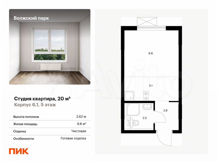 Квартира-студия, 20,1 м², 9/24 эт.