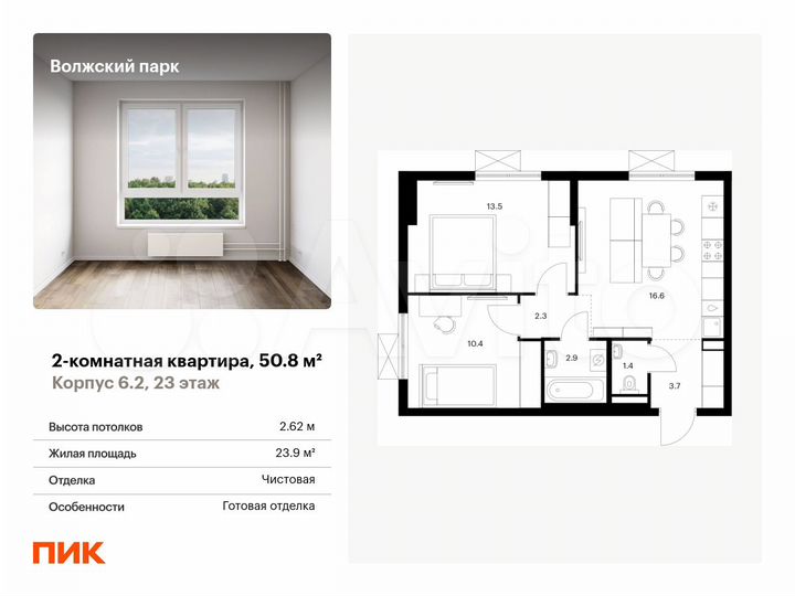 2-к. квартира, 50,8 м², 23/24 эт.