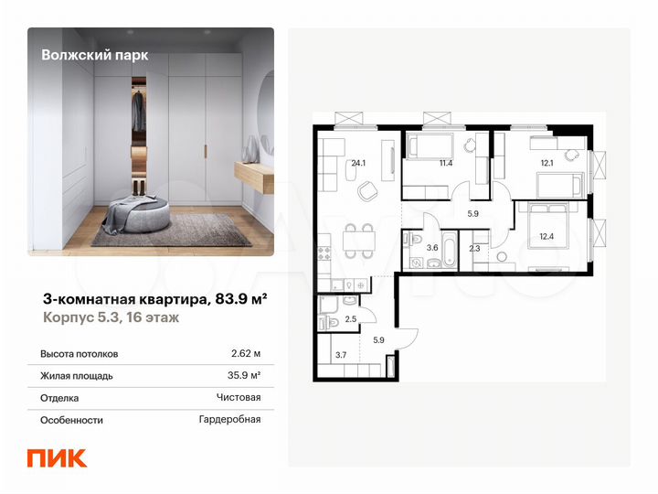 3-к. квартира, 83,9 м², 16/24 эт.