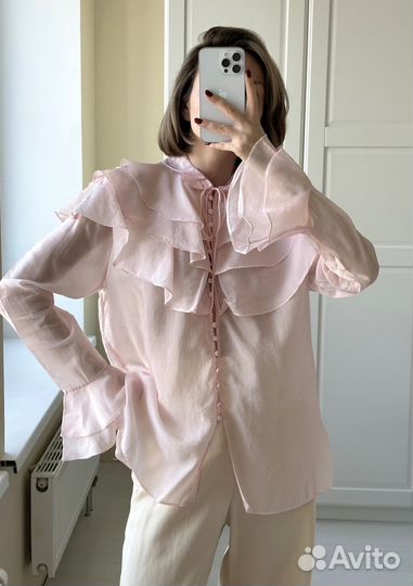 Блуза lime L розовая новая с воланами